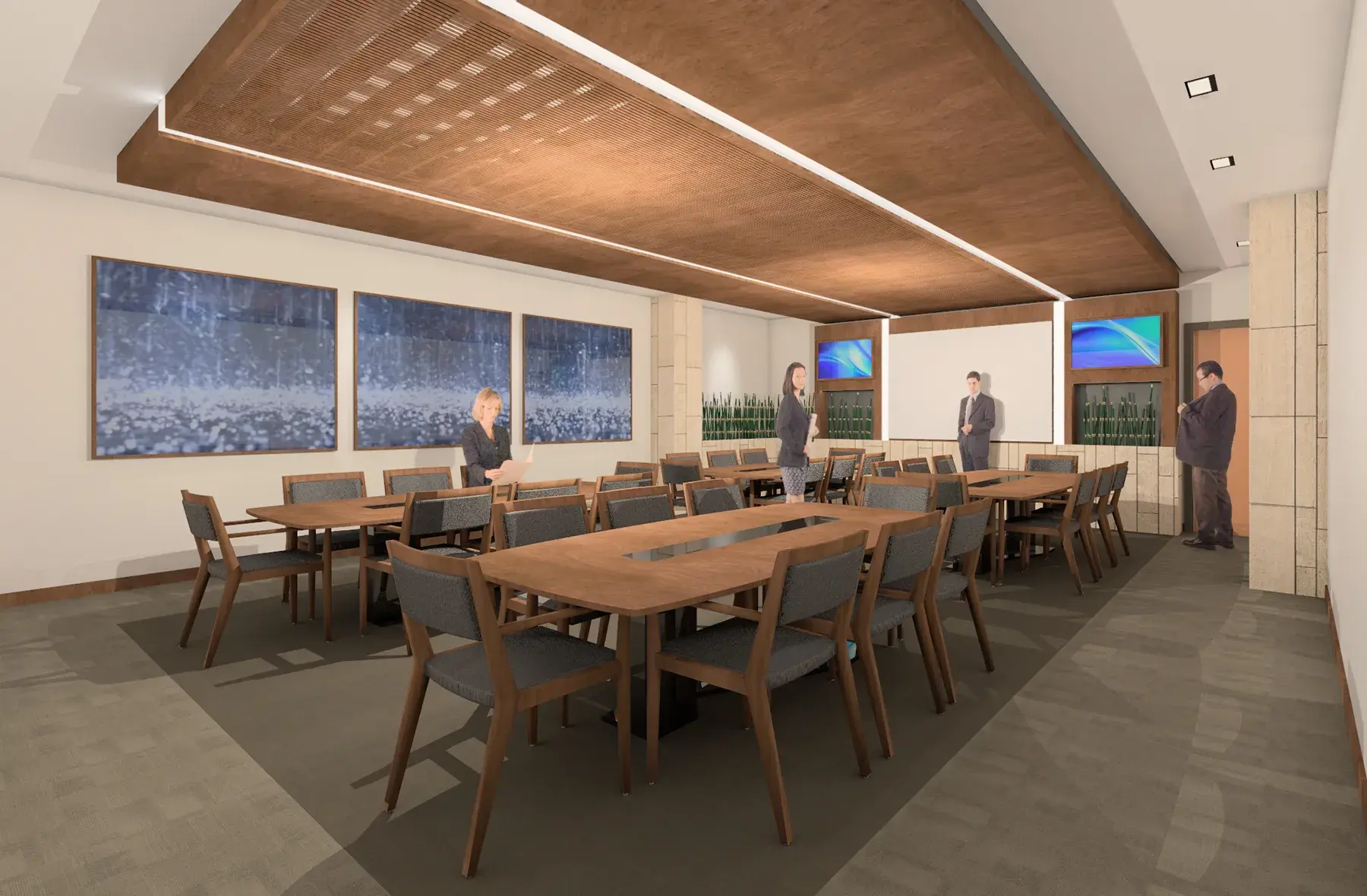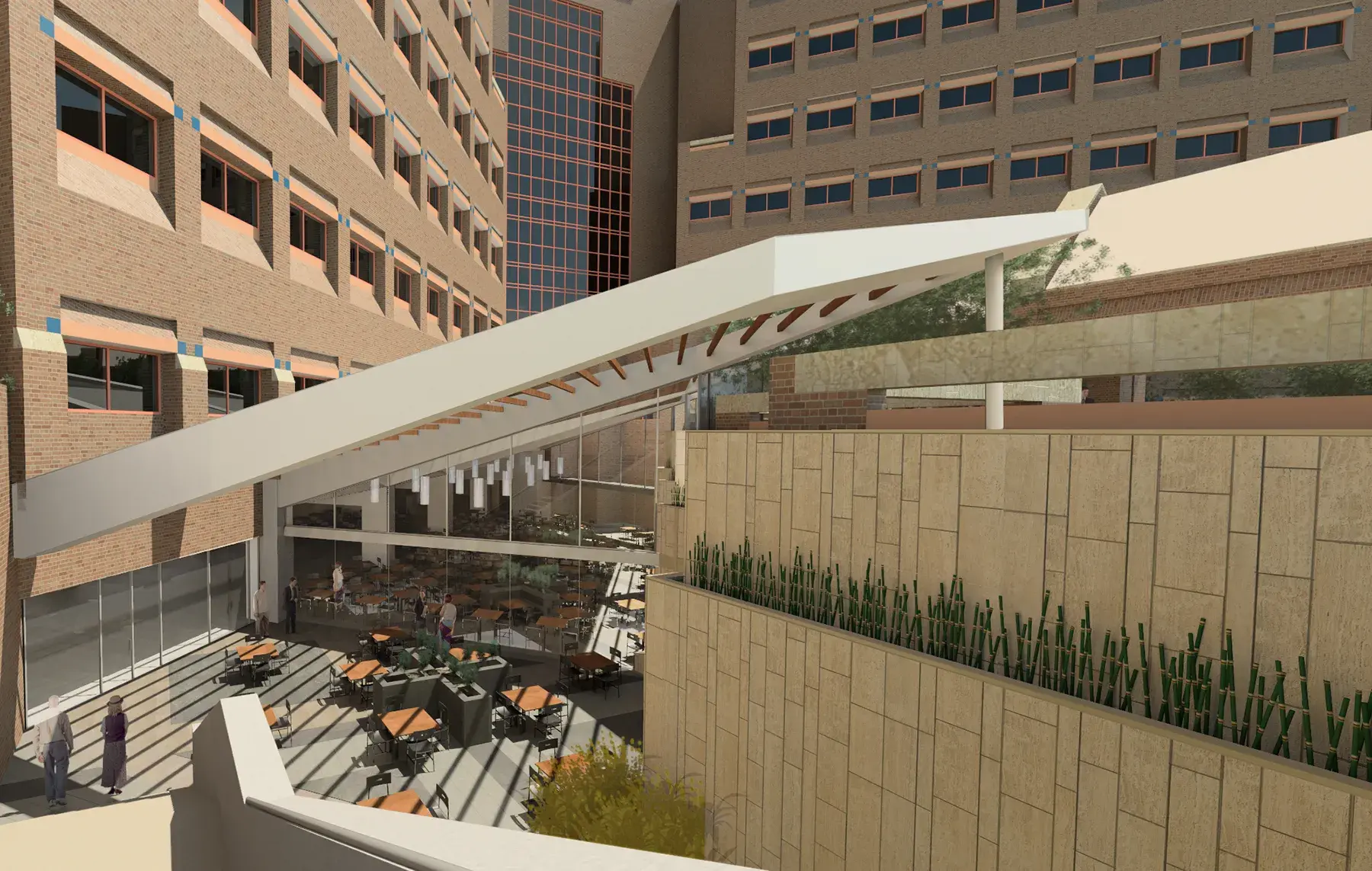The SAMMC Dining & Kitchen Addition & Renovation project showcases a thoughtfully designed expansion and modernization of the existing dining and kitchen facilities. The exterior reveals a contemporary yet harmonious addition, featuring clean lines and a balanced blend of materials that complement the original structure. Inside, the renovation breathes new life into the space with an open, functional layout that enhances natural light and promotes efficient workflow. The updated kitchen boasts state-of-the-art appliances and finishes, creating a welcoming environment for culinary staff and diners alike. This project exemplifies a seamless integration of modern design principles with practical needs, elevating the dining experience while respecting the building’s architectural character.
